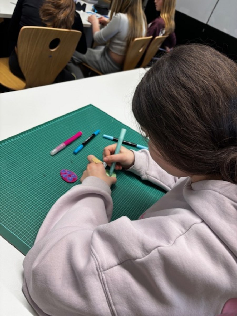 Wie schon kurz vor Weihnachten herrschte auch in der Vorosterzeit wieder reges und freudiges Treiben in unserer Schule. Unsere Schulleiterin, Frau Rohse, hatte erneut zum gemeinsamen Basteln eingeladen, und die Schülerinnen und Schüler waren mit sichtbarer Begeisterung dabei. Der Kreativität waren dabei keine Grenzen gesetzt: So entstanden in konzentrierter Handarbeit flauschige Pompomhasen, farbenfrohe Ostereier aus Papier, liebevolle Osterkartengrüße, rustikale Holzosteranhänger und vieles mehr.